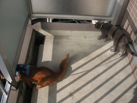 大変理想的なこたろうのリード付ベストを手に入れた猫キチは早速2匹をベランダへ(・∀・)♪