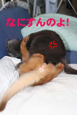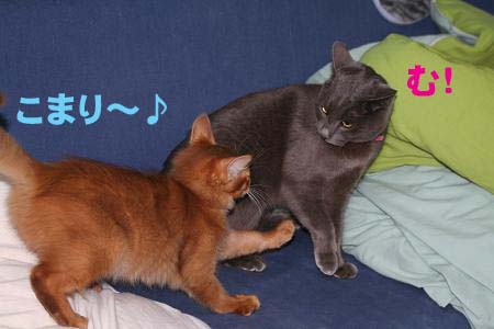 あんまりしつこいと人間が止めに入るけど、基本はこまりちゃんに怒ってもらいます。