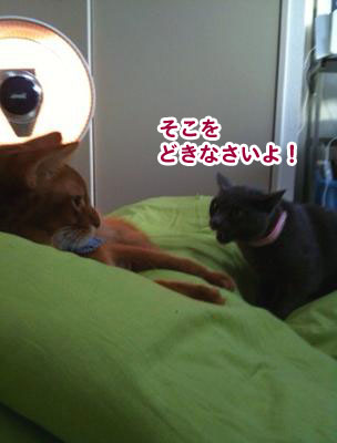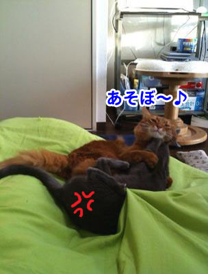 今回はちょっと横になっていた猫キチの上にいたこっちゃんの元に