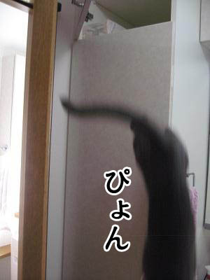 そしたらこまりちゃんがまず脱衣所の扇風機の上に乗り、トイレのドアへ。