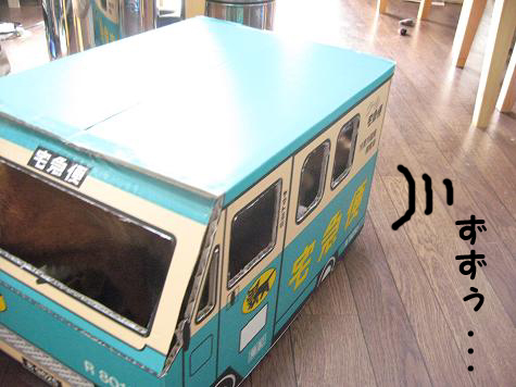 ふふふ(*´д`*) ヤマト便の営業所で売ってるダンボールの白い部分を綺麗にくり貫くと車になるのですよ。