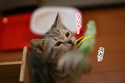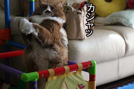 おもちゃで遊んでるところを撮ろうとシャッターを切ると・・・