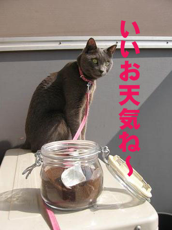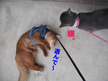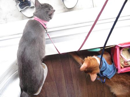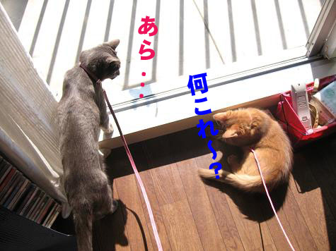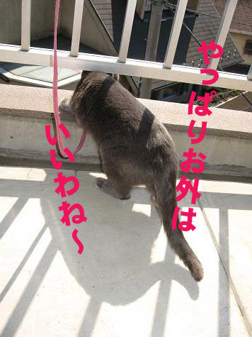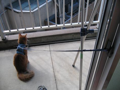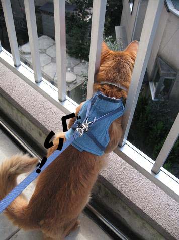 大変理想的なこたろうのリード付ベストを手に入れた猫キチは早速2匹をベランダへ(・∀・)♪