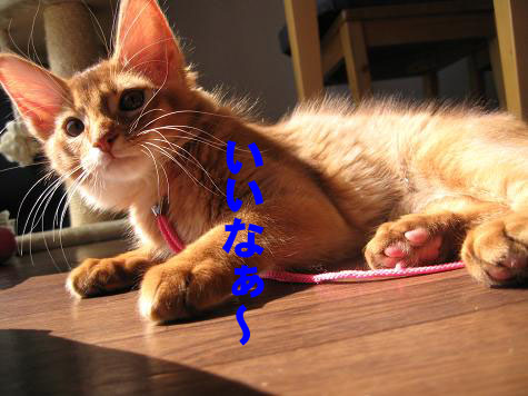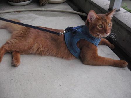 何回かつけてはいるけれど、やっぱり気になる様子。ごめんよ・・・これに慣れないとお外は出してあげられないんだよ。(´・ω・`)ガンバレ