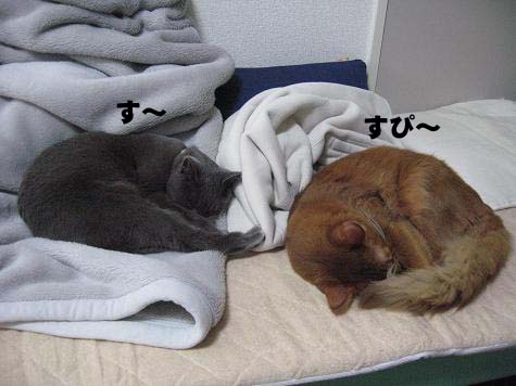2匹が並んで寝てます。