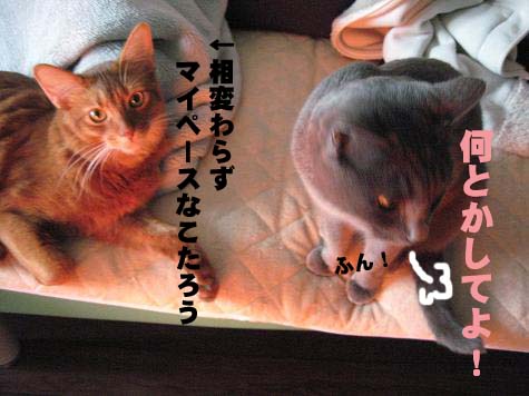 こまりちゃん、お腹いっぱいならこっちゃんにあげたら?