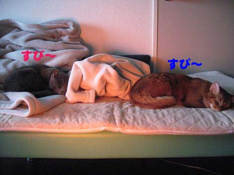 猫と寝る事