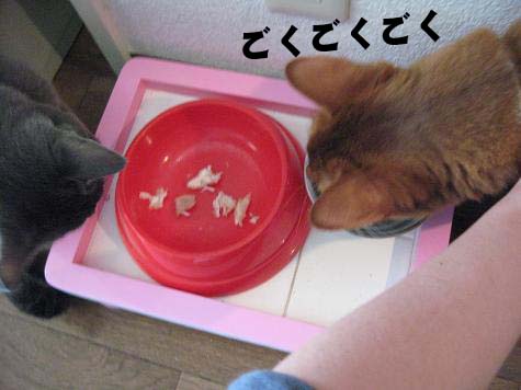 こっちゃん、待ちきれず何故かこまりちゃんのお水をゴクゴクしてます。