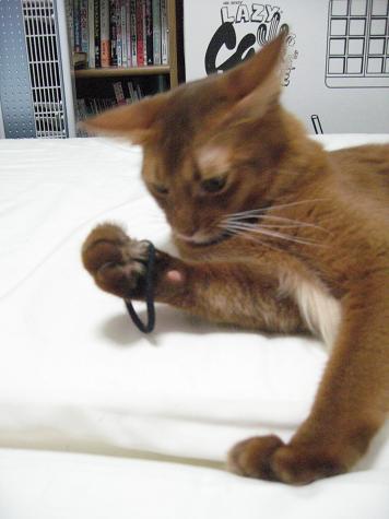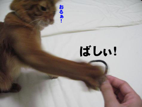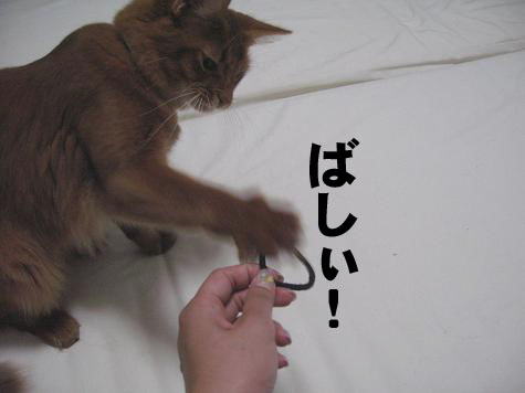 ベットにいたらこたろうがおもちゃを持ってきて遊んでのアピールw