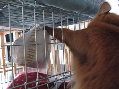 何なんでしょう・・・その横にいてくれればいいのに。これじゃ戻せないじゃない(つД`)(←猫キチの悲しい性。猫をどかせません。)