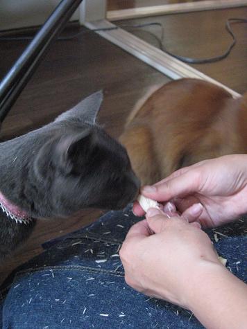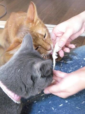2匹が変わりばんこに食べてくれてます。