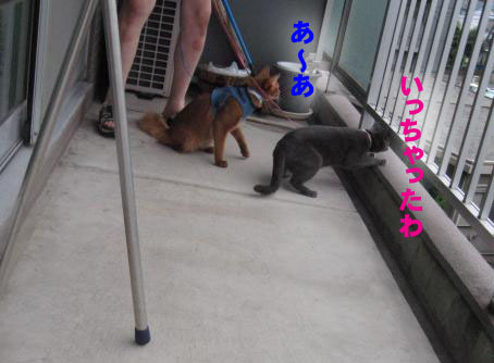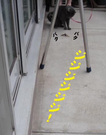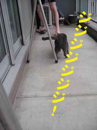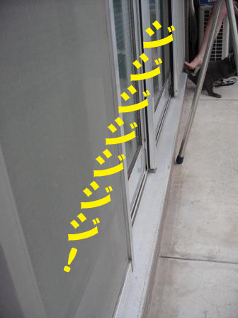 しかしこの時のこまりちゃんの力はすごかった。旦那が負けて裸足でベランダに出ます。