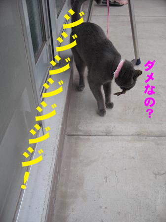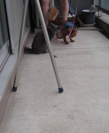 でも2にゃんはとっても興味津々なのでくつろいでいる旦那を使い、お外に出てもらいました。