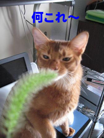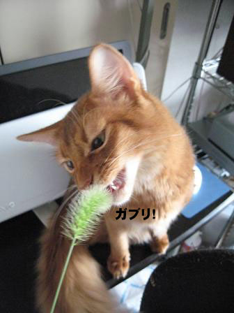 さっそくこっちゃんに採って来たねこじゃらしを見せます。