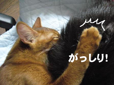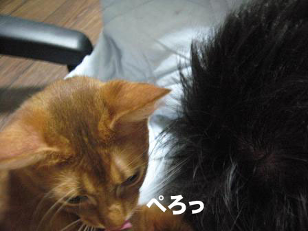 諦めた猫キチ、ちょうど泊まりに来ていたお友達のつぶあんさんにそれを告げると彼女、いとも簡単に被せちゃいましたw