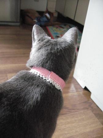 猫キチ、こっちゃんが寝るのを待ってます。でもこっちゃん、構ってもらえると思って頑張って起きてます。