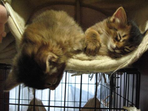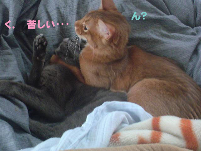 4歳の大人にゃんこにはこたろうのやんちゃっぷりは嫌みたい。小さい頃より更に大きくなった体でのしかかられると堪らないんだろうなぁ(;・∀・)