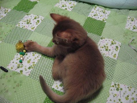 寝ぼけてたけど、おもちゃを振れば敏感に反応(・∀・)カワイイ