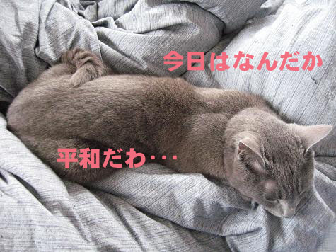悲鳴が聞こえた後は、大抵こまりの走って逃げる音が聞こえるんだけど、今日は聞こえない。どうしたのかしら?と思って寝室を覗いてみると・・・