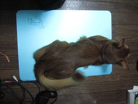 熱が出てるのかな?暑そうだったので、夏用にと思って買ったアルミボードの上に乗せてみました。