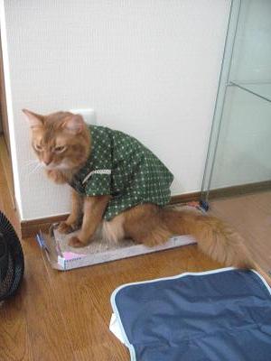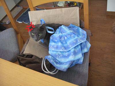 無理やり着せた報復か?そらさんの荷物の上にどっかり乗られました。
