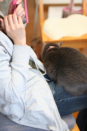 膝に乗ってます。