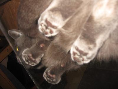 猫キチが気づいて撫でるまでの間ずっとこのまま固まってます。