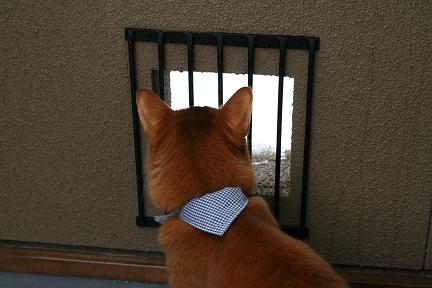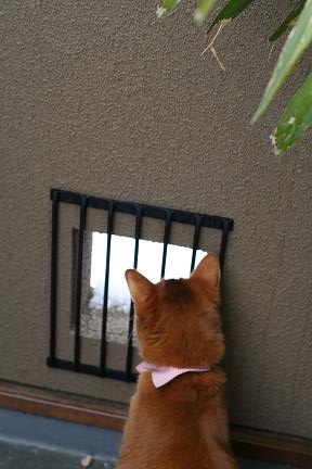 普段は人間用のドアは閉まっててキャットドアから出入りする仕組み。