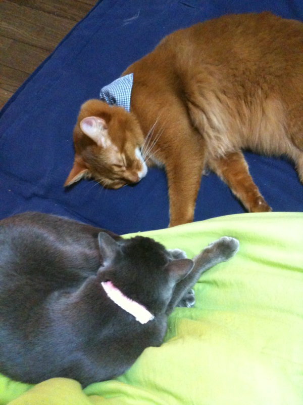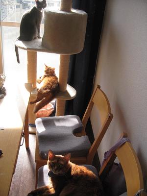 流石に寂しかったのか猫キチにたむろする3匹。
