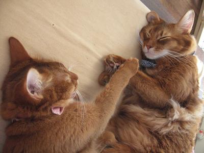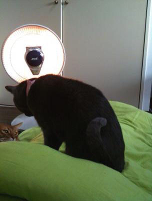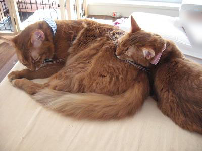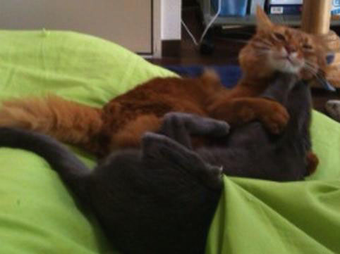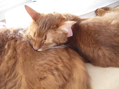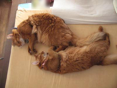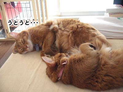 今回はちょっと横になっていた猫キチの上にいたこっちゃんの元に