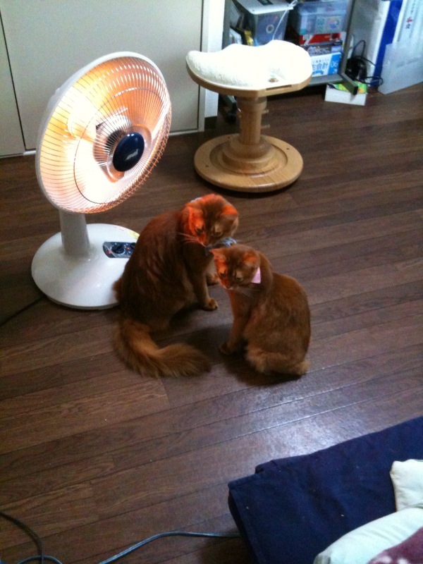 以前こまこゆが猫キチのお膝を奪い合う様子をお伝えしましたが・・・。