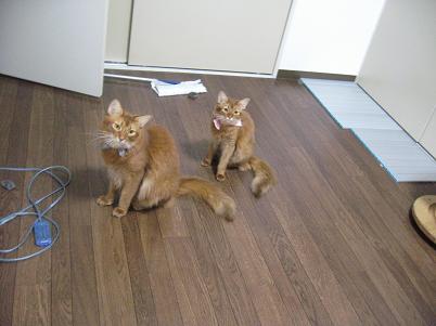※茶色(特に兄)は今日もお風呂上りの冷たいマットの上でくつろいでおります。