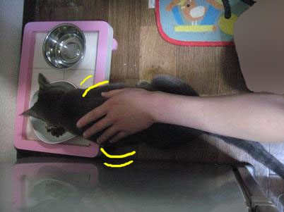 ※食べないように手を上げたらついてきました。