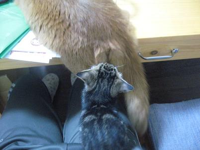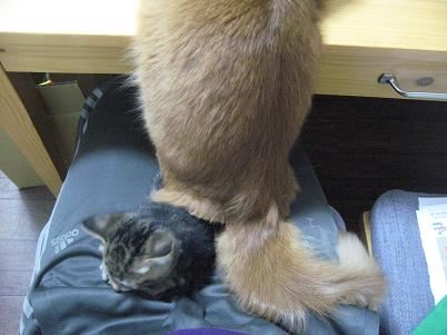 ちびっ子は常に猫キチの膝の上なんだもの(´・ω・`)ショボン