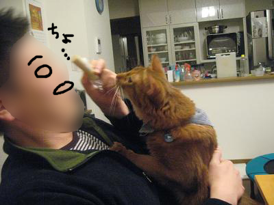 こっちゃんの猛攻撃にあい、ゆっくり食べられない旦那さんは小さいかけらを