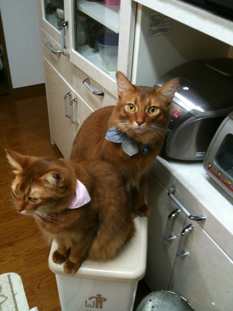こてつのご飯の残りを狙う茶色兄妹。↓