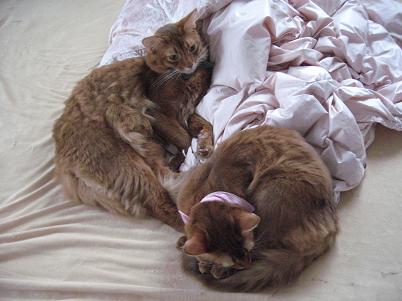 もう寝るのか?と思ったら必ず片方がまた毛づくろい。