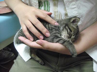 抱っこしてみる?と渡したら猫を飼ったことない方なのでぎこちない感じ。