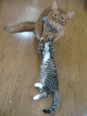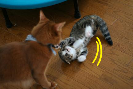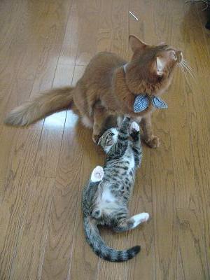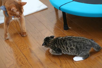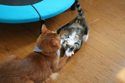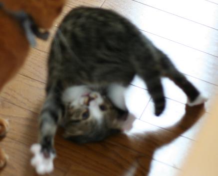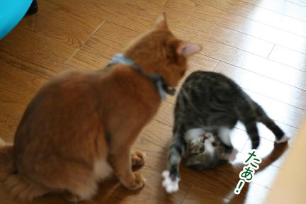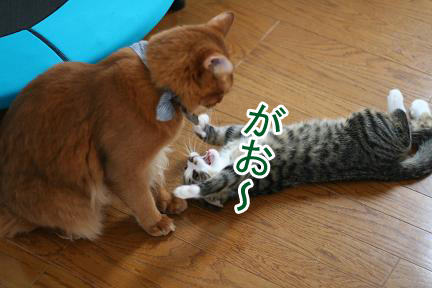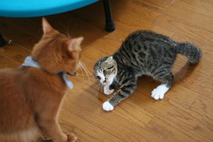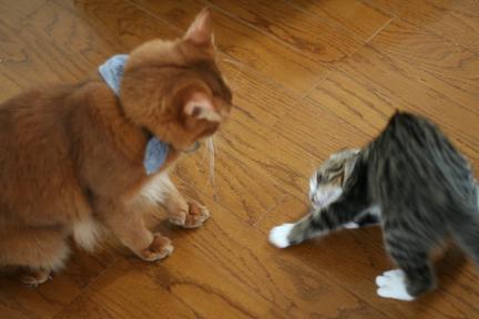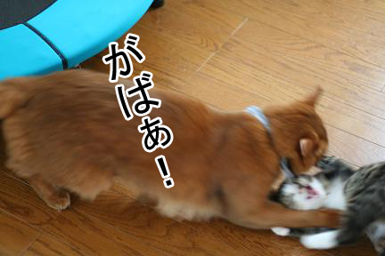 全身で襲い掛かるこてつとは対照的に大人なこたろう君は超余裕。