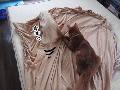 シーツ引こうとすると嬉々として入ってくるんですよねぇ。