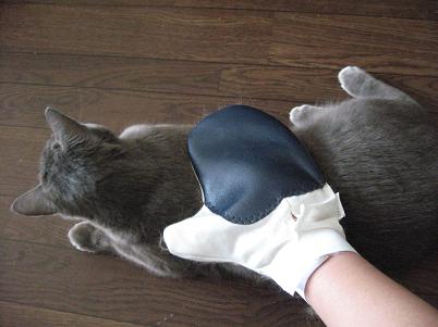 こまりちゃんの超お気に入りなグローブ型ブラシ(前回の記事を見てね)についてですが、とても気持ち良さそうに撫でさせてくれてごっそり取れるけど、表面の硬い毛も取れるのでフェルトを作るのならファーミネーターの方がいいかもしれません。