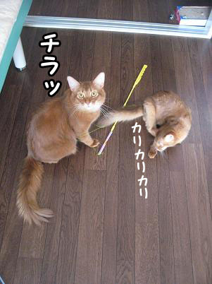 茶色兄妹に邪魔されない周りを確認してから遊ぶこまちゃん。