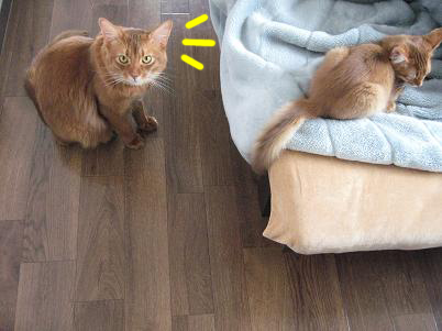 こまりちゃん、いつもなら威嚇なのに寝ぼけてるからか大人しいねw