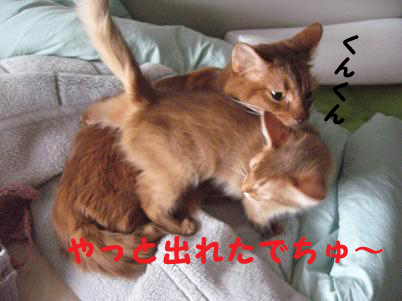 速攻でおうちに帰り、出してあげたらまたこたろうがやって来て匂いチェック。