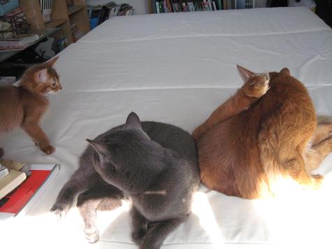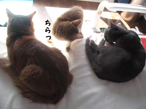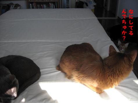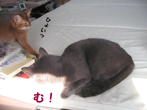 よりも遊ぶのに忙しそう。こまりが警戒します。