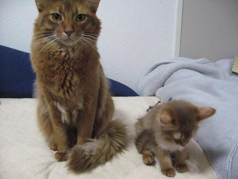 我が家に入ったつぶあんさん、こたろうの大きさにびっくり。