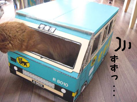 ふふふ(*´д`*) ヤマト便の営業所で売ってるダンボールの白い部分を綺麗にくり貫くと車になるのですよ。